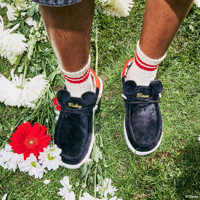 We really gave this collab shoe the white glove treatment. Disney X HEYDUDE Wally Funk Mickey features the character’s iconic coloring, a Mickey hand lace cover, Mickey ears and black and white Mickey head print lining. A truly magical shoe for men and women.