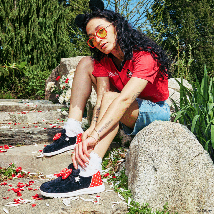 Everyone’s favorite sweetheart is now on a HEYDUDE™ shoe. The Wendy Funk Minnie has you Disney-decked from bows to toes. Featuring Minnie’s signature polka dot pattern, a Minnie hand lace cover, Minnie ears and black and white Minnie head print lining; this shoe is so cute it will make you blush. Perfect for Disney lovers of all ages.